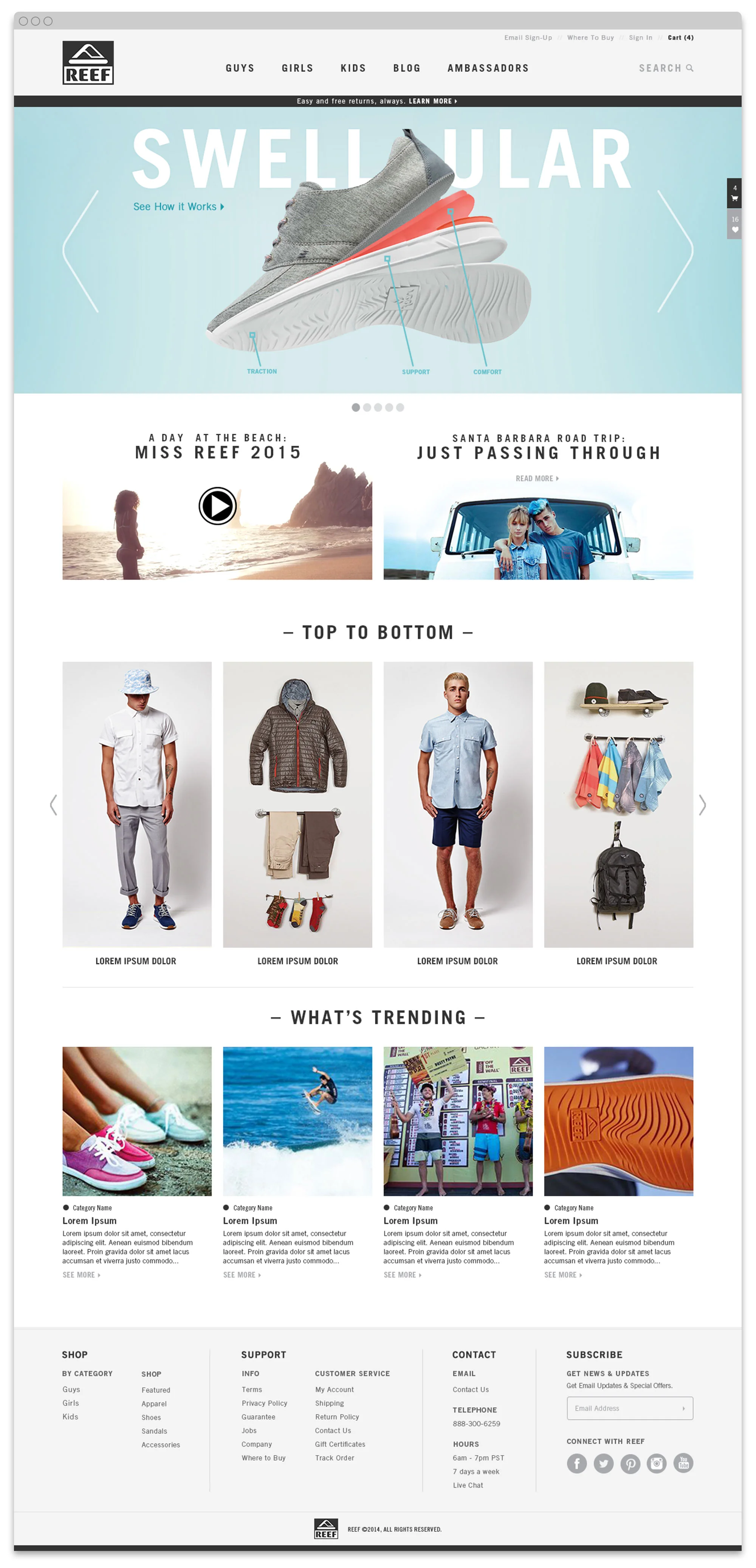In 2015, VF Corp, a multi-billion dollar apparel retailer powerhouse, was looking to transition five of their leading retail brands onto a single responsive web platform and streamline each online experience across the various brands. At Rosetta, the design team was tasked with enhancing the online e-commerce presence for Lucy women's active-wear, Smartwool winter-wear, Reef outdoor-wear, Lee denim and Wrangler denim. As a result of this cohesive design implementation, all five brands have been elevated on a global scale, bringing their products to even more online and mobile users than ever before.